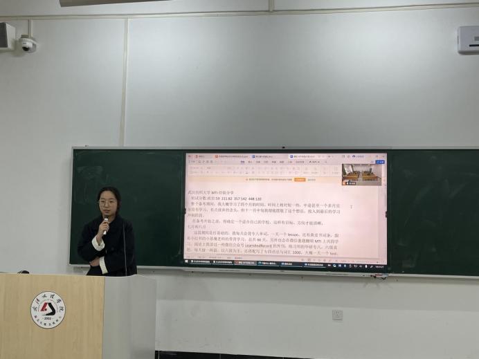 黄玉晴结合自身从求职转向考研的经历,分享了心态转变与整体备考规划。她建议同学们尽早明确目标、及时行动,合理安排每日学习任务,重视单词积累与笔译基础训练,在循序渐进中稳步提升专业能力,为后续复习打下坚实基础。