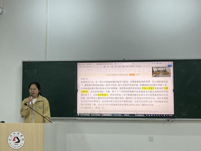 分享会结束后,黄群丹老师做总结讲话,希望同学们认真吸收本次分享会成果,将优秀经验转化为备考动力,明确目标、科学规划、坚持不懈。此次考研经验交流分享会的举办,进一步搭建了师生交流、朋辈互助的良好平台,营造了勤学进取、争先创优的优良学风,为我院2026届考研工作有序开展奠定了坚实基础。祝愿全体备考学子不负韶华、砥砺前行,在来年考研中取得优异成绩、成功上岸。