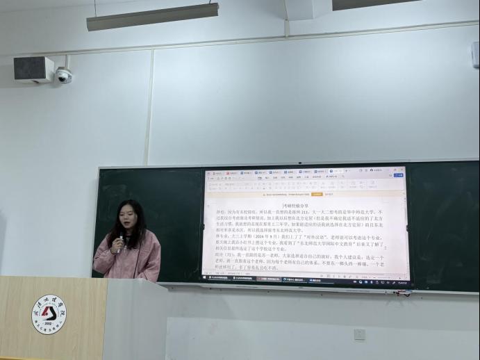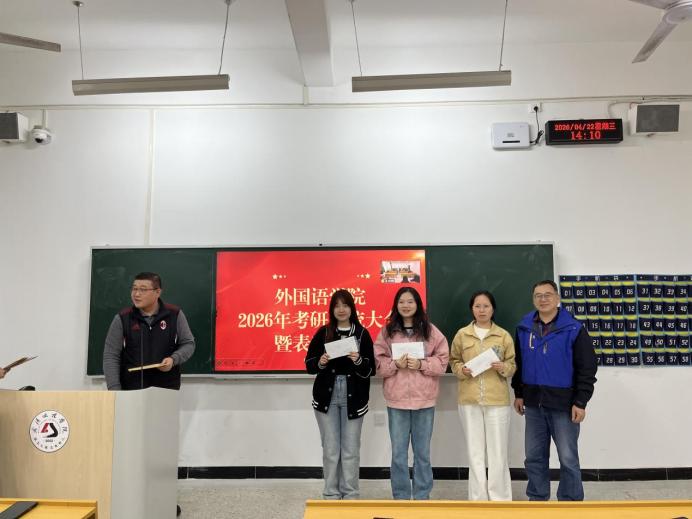 活动伊始,濮琼老师致开场辞,向成功考取硕士研究生的同学表示热烈祝贺。黄群丹老师以“两个春天”寄语师生,一份祝福赠予成功上岸的学长学姐,祝贺他们收获耕耘的果实;另一份希望送给在场的学弟学妹,鼓励大家在此刻埋下理想的种子,静心耕耘、静待花开。随后,与会领导和老师为考研优秀学子颁发奖金,以资鼓励,肯定了大家在求学路上的不懈努力与优异成绩。