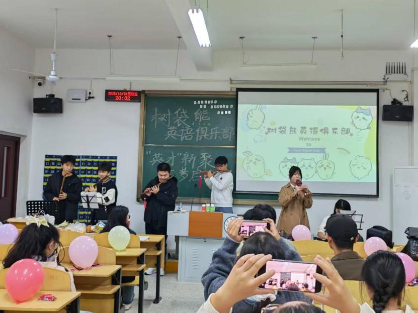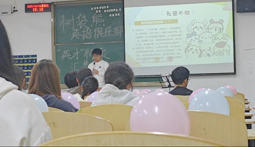 10月24日晚,新生见面会暨英语学习分享会如期举行,自我介绍与趣味小游戏快速打破陌生感,社团负责人详细介绍历史沿革、品牌活动与未来规划,老社员带来英文歌曲、配音等才艺表演,还分享实用英语学习技巧并现场解析四级真题,特邀民乐社团的友情演出更添惊喜,让新成员在轻松氛围中筑牢归属感,为后续活动开展奠定坚实基础。