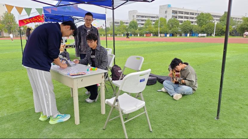 10月10日-14日,校园操场同步举办社团游园会,单词拼图、英文听歌识曲等趣味游戏吸引大批同学参与,口语对话、乐器演奏等风采展示立体化呈现社团特色。