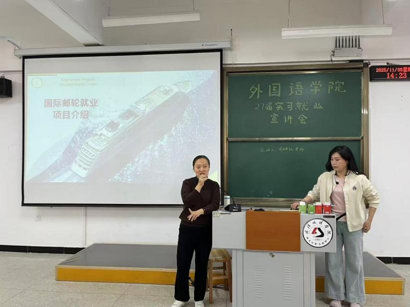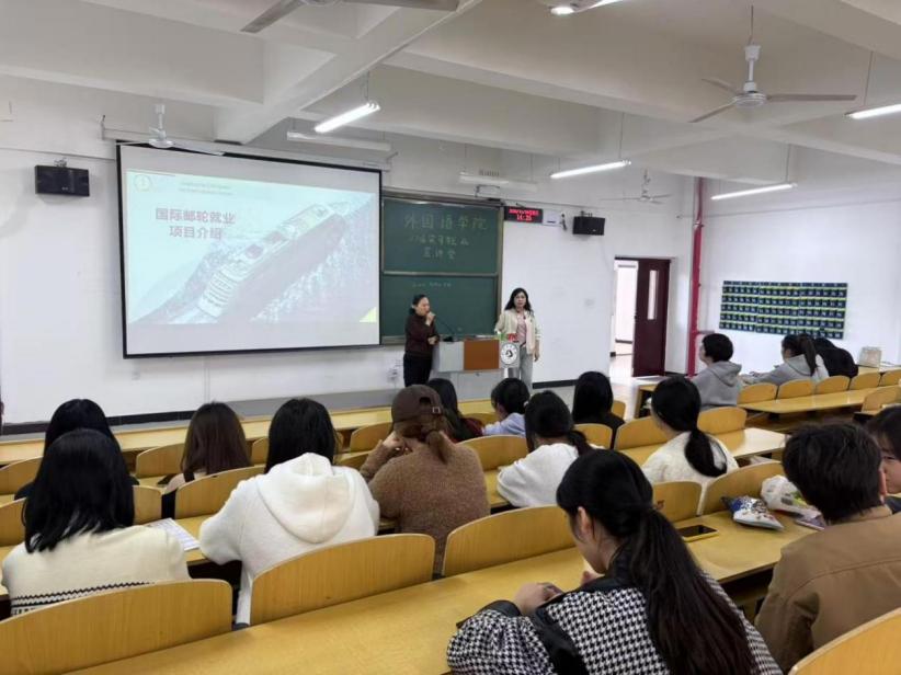 11月5日,为助力23级本科生、24级专科生、25级专升本学子明确职业方向,威廉希尔中文网站近期开展国际邮轮行业就业宣讲会,周珮红老师作为主讲嘉宾,为不同学段的同学带来一场“语言+全球职场”的干货分享。