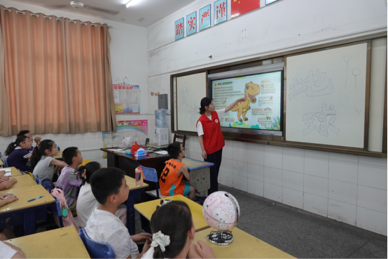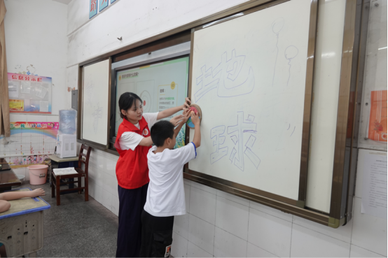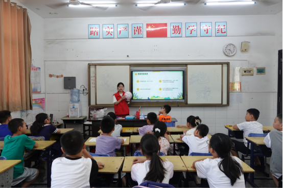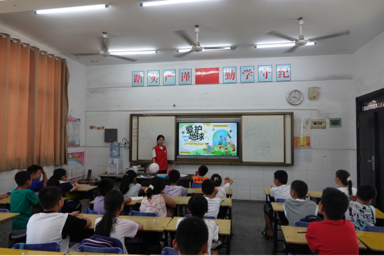 7月的郎君镇暑期爱心托管班里,华韵心文化志愿服务队的志愿者们带着“地球大作战,环保小卫士”主题活动走进课堂,用趣味互动搭建起孩子们与地球的“对话桥梁”,让环保理念在探索中扎根。